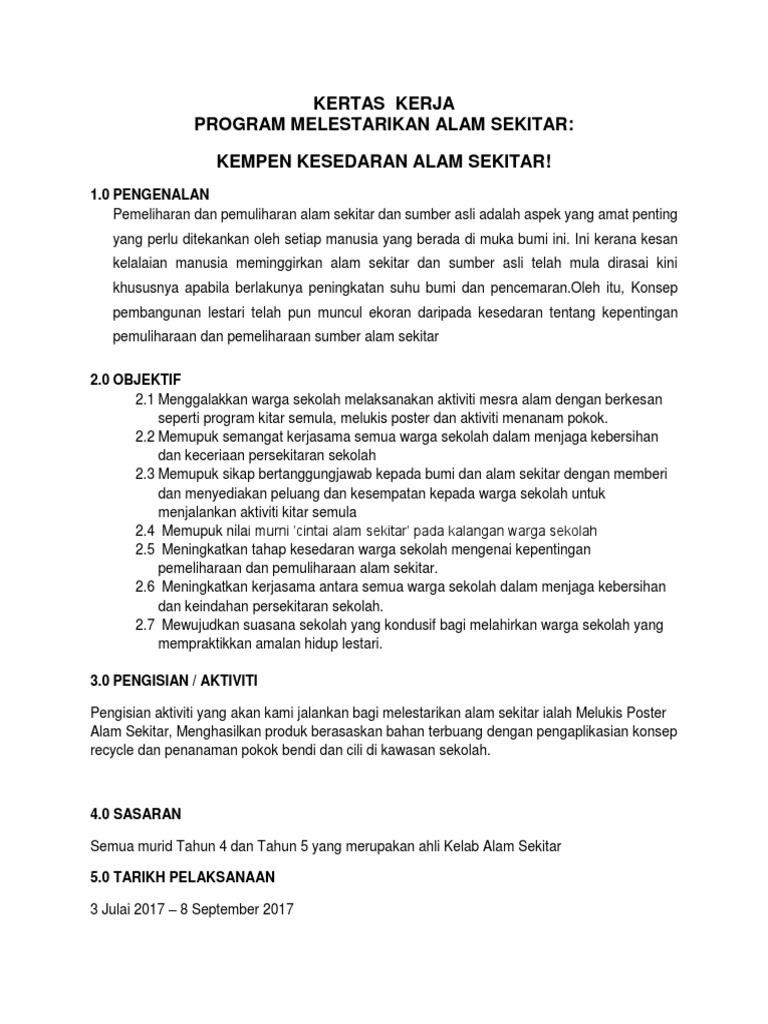 Contoh Kertas Kerja Ceramah Alam Sekitar